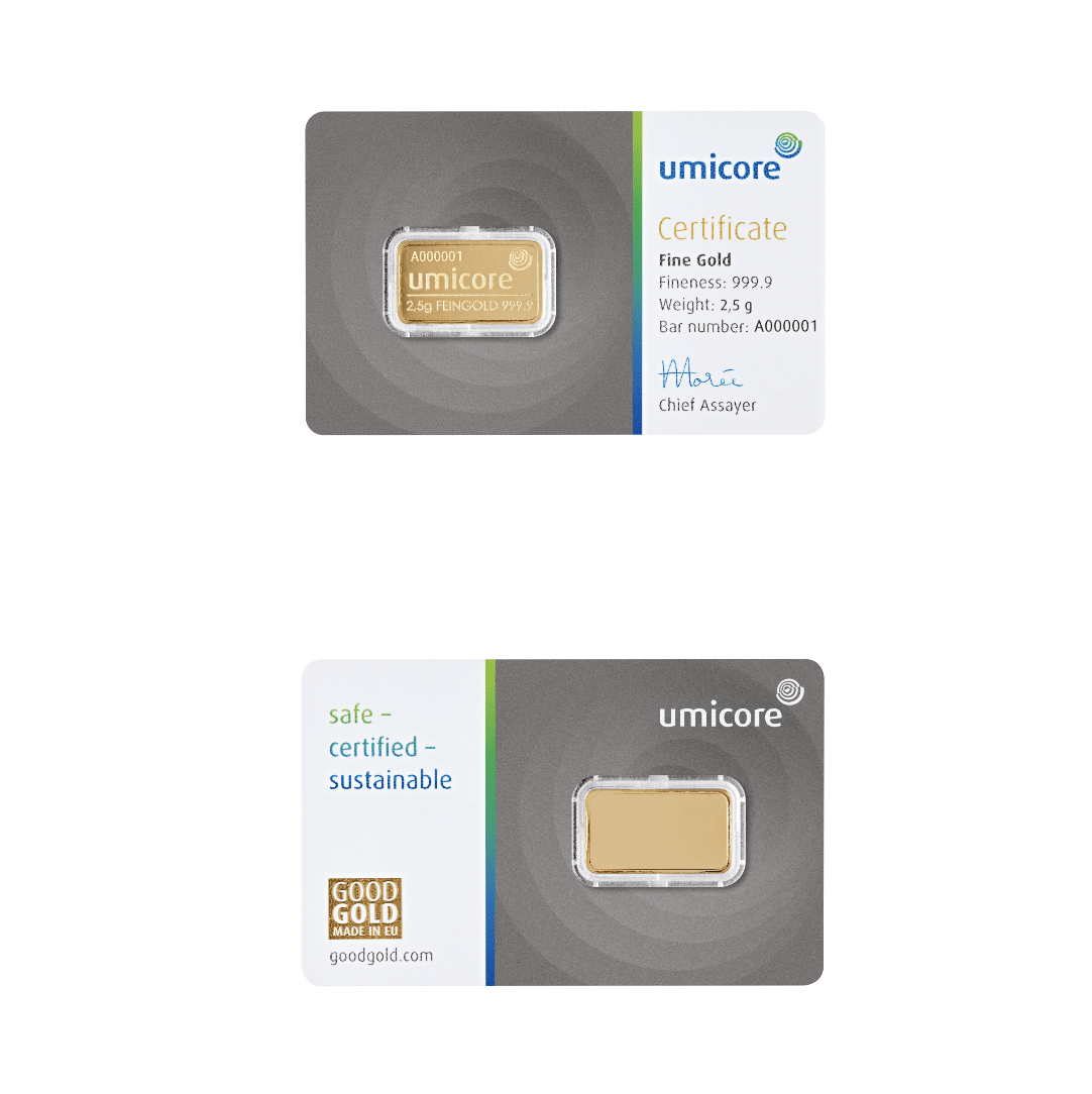 Le lingotin d’or fin 2,5 grammes - LBMA est une solution simple et fiable pour investir dans l’or physique, en combinant pureté, sécurité et forte liquidité.